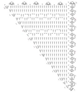 Begin at the narrow tip of the triangle. You’ll increase by 1 or 2 stitches on one side while maintaining a decorative edge on the opposite side. Turn at the end of each row.
