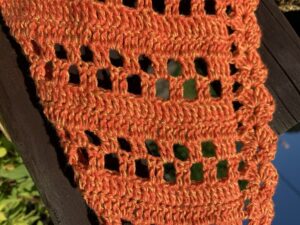 Repeat Rows 15–18 until you’re nearly out of yarn, leaving enough for the final decorative row.