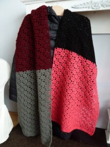 Háčkovaný šál Helena je príjemný projekt vhodný aj pre začiatočníkov. Pléd je ideálny na chladnejšie dni. Kombinuje jednoduché vzory s výraznými farebnými blokmi a dodá každému outfitu štýl aj teplo. Je háčkovaný z mäkkej akrylovej priadze a s rozmermi 200 × 50 cm je ideálny na vrstvenie a ľahko sa prispôsobí vašim obľúbeným farbám.