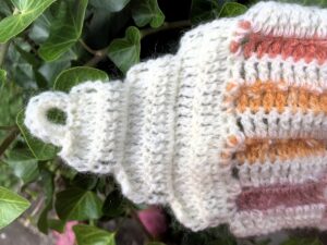 8.r. 9 ks do medzery, priadzu odstrihneme a spojíme neviditeľným stehom do 2. prds z predchádzajúceho radu, zapošiť odstávajúce nite, pripojiť strapce – hotovo.