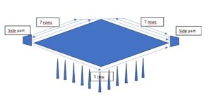 Bočné diely sú háčkované cez 9 bočných radov bielou priadzou nasledovne:
